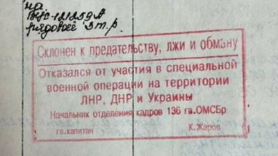 По словам автора Телеграм-канала Пиковый Туз, вот такие штампы ставят в РФ россиянам, которые отказались воевать против Украины.