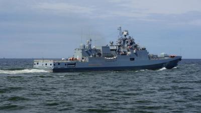 В восточной части Средиземного моря российский фрегат «Адмирал Григорович» подходит к двум эсминцам американского военно-морского флота США.