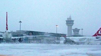 В Турции в аэропорту Стамбула сегодня из-за снегопада отменены все рейсы.