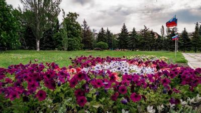 Возле здания так называемой «городской администрации» неподконтрольной Украине Горловки Донецкой области установили российские влаги. Об этом сообщает Телеграмм-канал «Сармат», который публикует соответствующие фото.