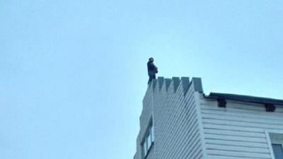 Полицейские четыре часа уговаривали молодого человека не совершать самоубийство мужчину, который вылез на крышу дома и хотел спрыгнуть.