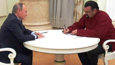 Президент РФ Владимир Путин лично вручил паспорт гражданина России известному американскому актеру Стивену Сигалу.