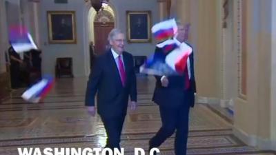 В президента США Дональда Трампа в Конгрессе Соединенных Штатов бросили охапку российских флагов.