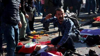 На месте теракта в Анкаре (Турция) продолжается работа бригад скорой помощи и пожарных расчетов. По последним данным, в результате взрыва получили ранения 75 человек.