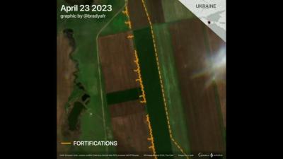 На опубликованных фотографиях видно, что укрепления расположены в 3,5 км к северу от города Армянск, на узком перешейке, соединяющем полуостров с Херсонской областью. Протяженность укреплений – 9 км.