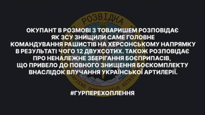 Из перехваченного украинскими разведчиками разговора двух российских оккупантов, стало известно, что во время обстрела воинской части в Херсоне погибло много россиян из командного состава армии РФ по Херсонской области.