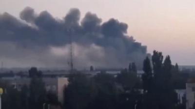 Несколько минут назад прозвучал сильный взрыв со стороны Чернобаевского аэропорта, после него поднялось облако черного дыма.