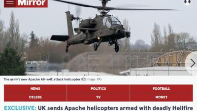 По словам британского издания Mirror., Великобритания отправит в Украину не только танки, но и ударные вертолеты, оснащенные ракетами Hellfire.