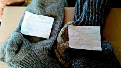 Жительница оккупированного Донецка Валентина передала украинским военным, находящимся на передовых позициях в зоне АТО, связанные теплые носки.