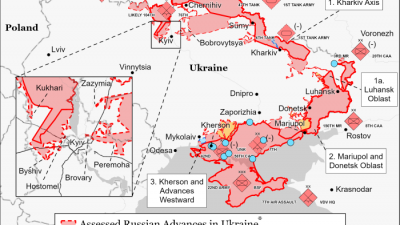 Российская армия по состоянию на 22 марта не пытается пойти в масштабное наступление, сжимая при этом под Мариуполем кольцо осады. Об этом свидетельствует актуальная карта боевых действий.