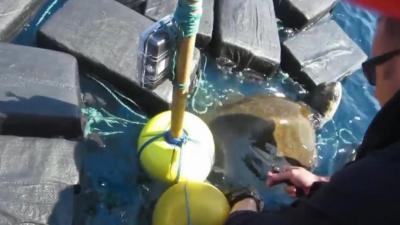 Кокаиновый плен: Моряки спасли черепаху, застрявшую в сетях