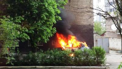 «Взорванное авто пылает»: в центре Донецка возле «отдела полиции» взорвали авто