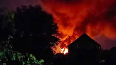 Этой ночью после мощного взрыва в Иловайске возник пожар на топливном железнодорожном складе оккупантов.